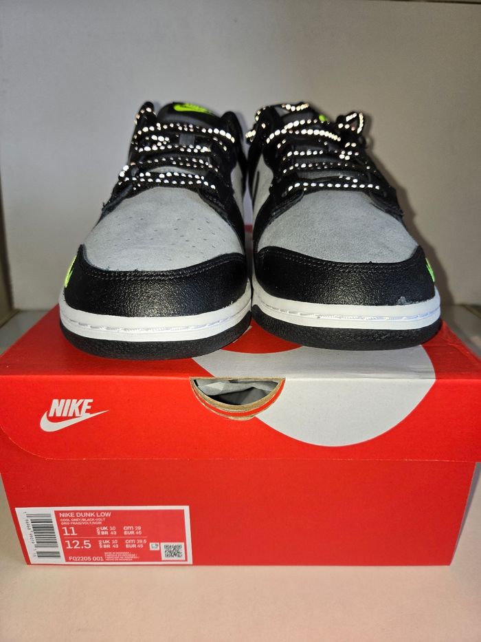 Vend nike dunk low noir,gris et jaune fluo taille 45 neuf dans sa boîte d'origine jamais porté, expédition rapide et emballage soigné, prix négociable