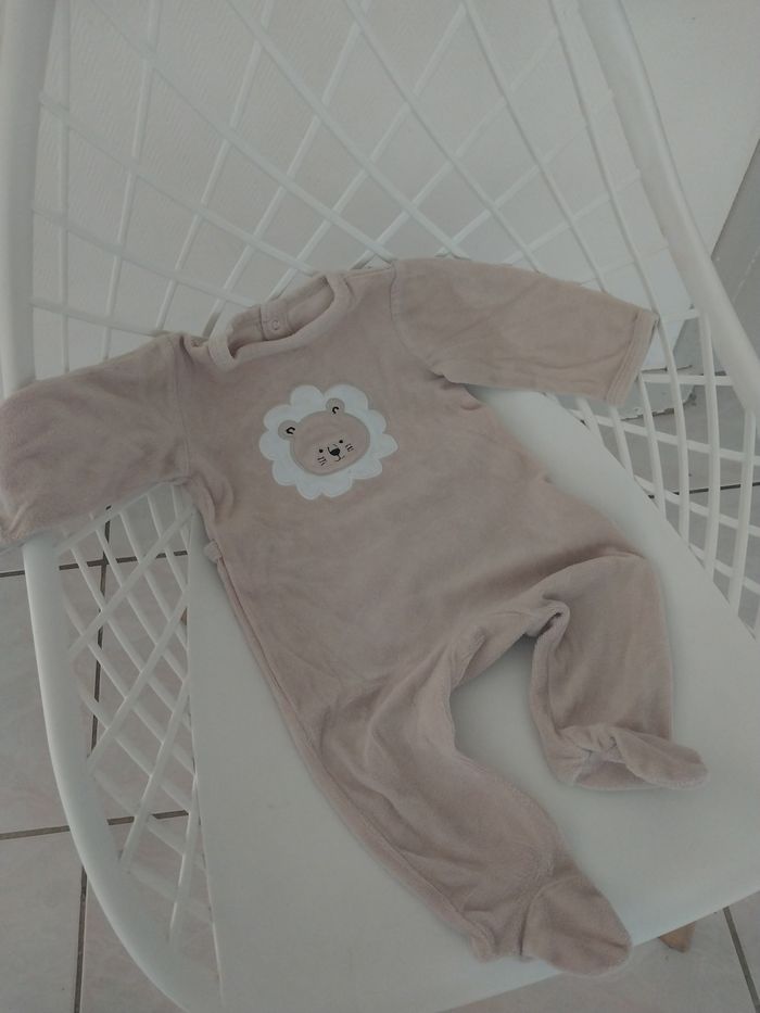 Pyjama mixte en velours tout doux, coloris beige, décoré d’un petit ourson 🐻 sur le devant. Taille : 6 mois Matière : 75% coton, 25% polyester Fermeture pressionnée au dos Avec pieds intégrés En bon état ✨ Confortable et pratique pour bébé, idéal pour les nuits douces ! 📍 Remise en main propre ou envoi possible. #pyjamabébé #ourson #6mois #bébé