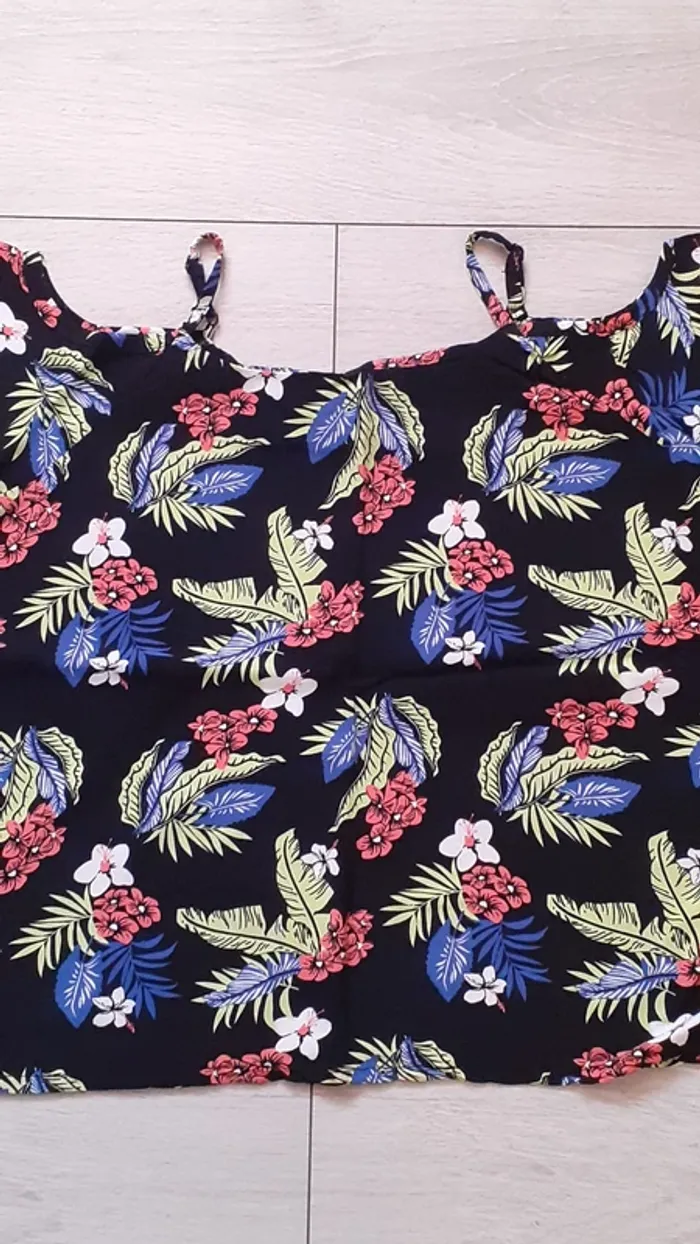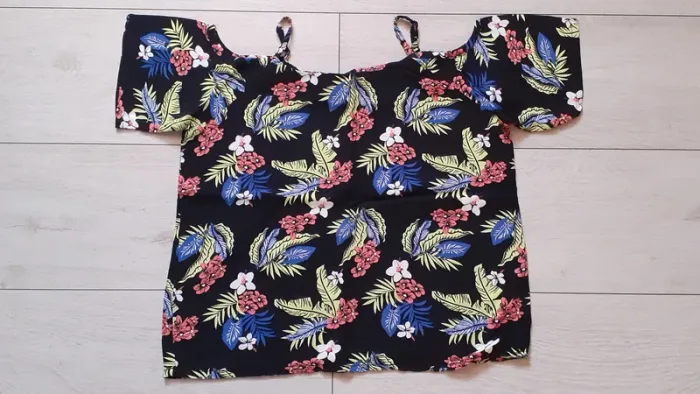 Tshirt pour fille taille 14 ans épaules dénudées avec petites bretelles marque La Halle coloris noir à motifs fleurs feuilles #jenni1428_fille_quatorzeans