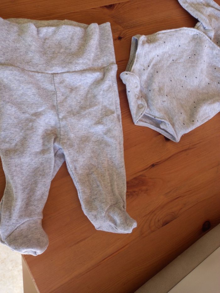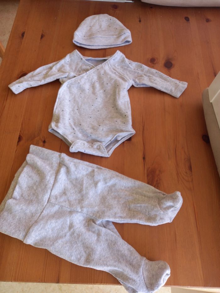 Ensemble 3 pieces taille 1 mois mixte Bonnet bodie et bas pyjama Porté 1 fois