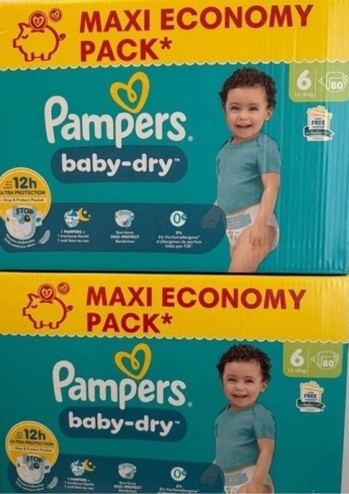 Lot de 2 maxi pack Pampers taille 6 soit 160 couches pour seulement 55€ n’hésitez pas ! Envoi rapide