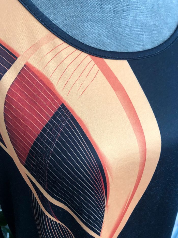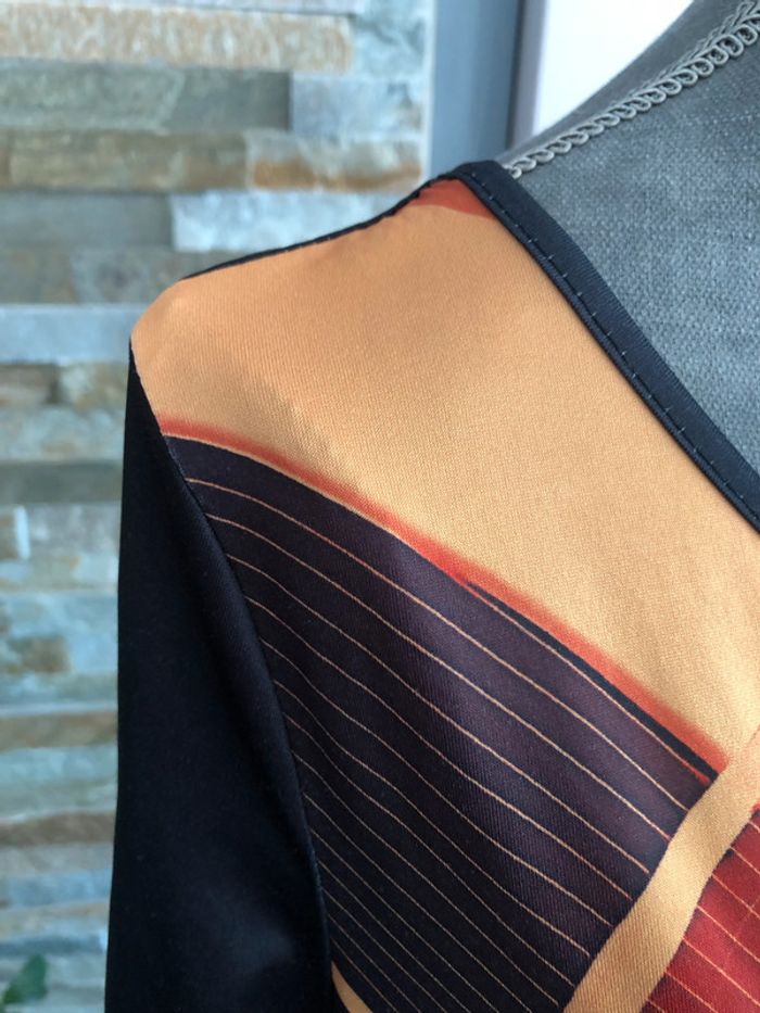 T-shirt noir à motifs dorés sans étiquette de taille et de compo. Porté plusieurs fois, traces d'utilisation (photo 4) mais pas de taches ni de trous. Je suppose que la matière est viscose car le t-shirt est très doux et lisse. - Epaules: 40 cm - Aisselles: 53 cm - Longueur totale: 61 cm Envoi sous 24/48h maximum! ---------- (L.r) #tshirt40 #mancheslongues40 #vetement40minissa14