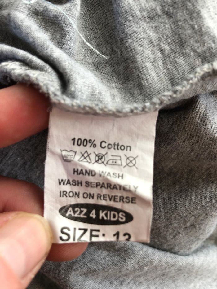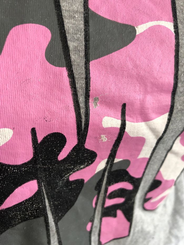 T-shirt gris avec inscriptions camouflage en état satisfaisant car l'inscription est un peu abimée et une tâche dans le bas d'une manche. Taille 13 ans. Le derrière du t-shirt est arrondi, manches 3/4. Envoi sous 24/48h maximum! ---------- #tshirt13ans #camouflage #haut13ans (A.r)