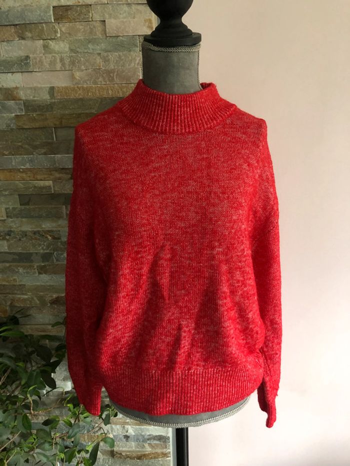Pull rouge à col montant, épaules basses. Taille S, marque KIabi. Présence de bouloches (photo 3), bon état général. Peu porté. 60% polyester, 33% acrylique et 7% elasthane. - Aisselles: 53 cm - Longueur totale: 56 cm Envoi sous 24/48h maximum! ---------- #pullrouge36 #hiver #rouge #kiabi #vetement36minissa14