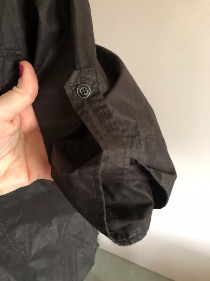 Chemise marron, brillante, taille 40. Marque Camaieu. Une fermeture sur le côté pour l'enfiler plus facilement. Manches 3/4 qui se relève grace à un lien. Très bon état. - Epaules: 40 cm - Aisselles: 51 cm - Longueur totale: 65 cm (bas légèrement arrondi) 100% coton Envoi sous 24/48h maximum! ---------- #chemise40 #camaieu40 #vetement40minissa14