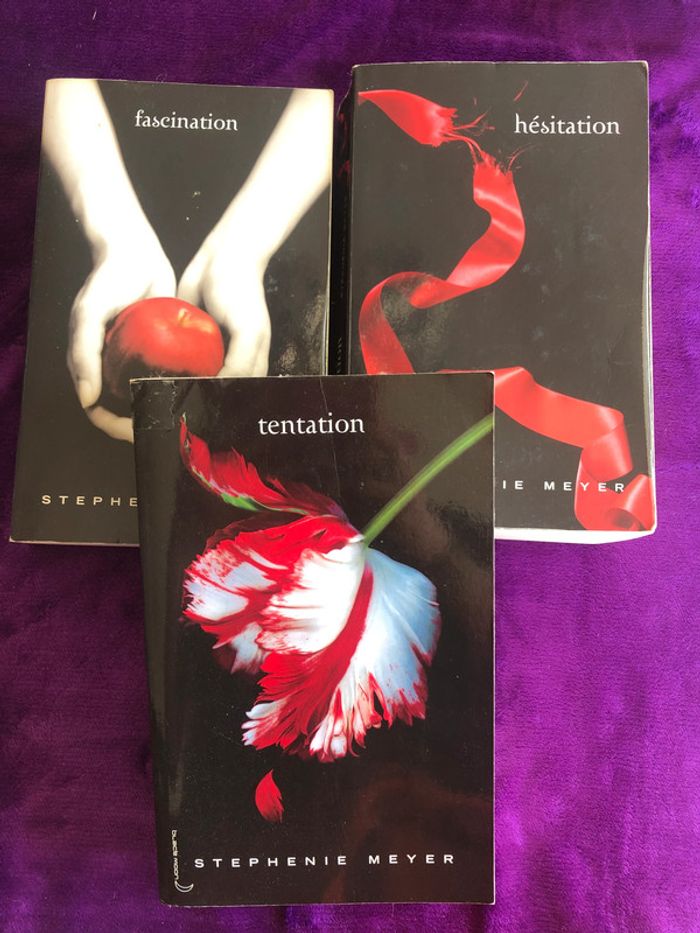 Lot des trois premiers tomes de la série Twilight. Lot en état satisfaisant car les pages ont jauni et tomes lus plusieurs fois (photo 2 et 3). Envoi sous 24/48h maximum! ---------- #twilight #livrebroché #vampire #ado #amour #stepheniemeyer