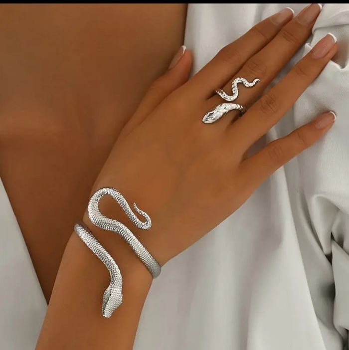 Ensemble bague et bracelet style bohème- serpent cobra - argenté - photo numéro 1