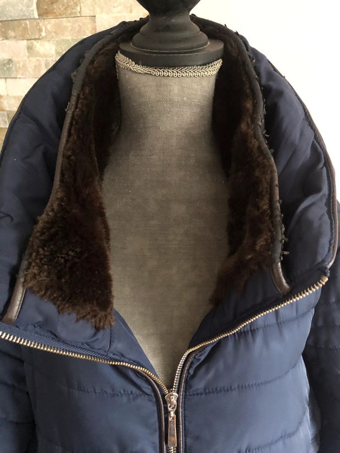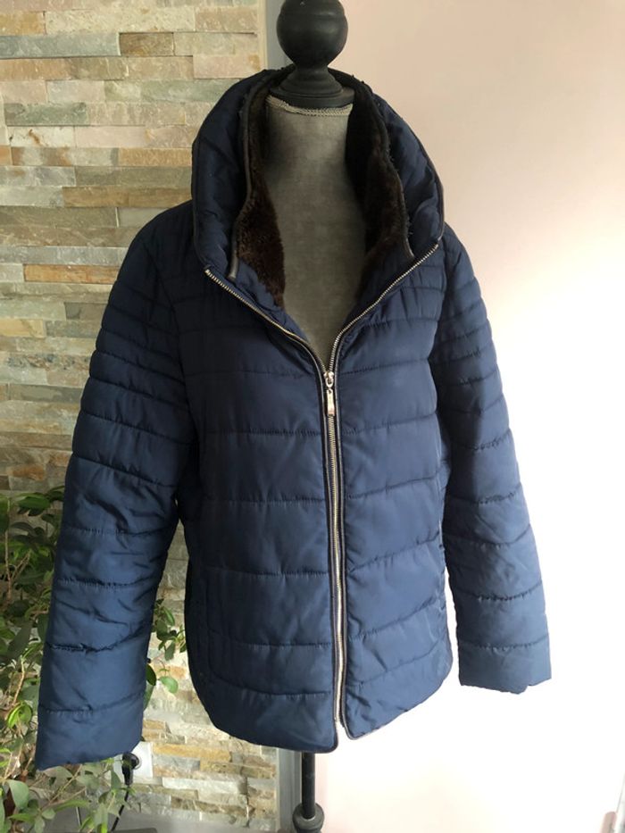 Gros manteau bien épais de la marque Camaieu, taille 44. Etat satisfaisant car plusieurs petits défauts, tous visibles en photo (liseré en sky abimé (photo 2,3 et 5), présence de bouloches sur le tissu "quadrillé" et fils tirés (photo 6) Encolure très épaisse avec fausse fourrure. 100% polyester - Epaules: 44 cm - Aisselles: 58 cm - Longueur totale: 65 cm Envoi sous 24/48h maximum! ---------- #manteau44 #veste44 #hiver #vetementfemme44 #camaieu44 #bleumarine