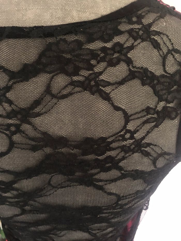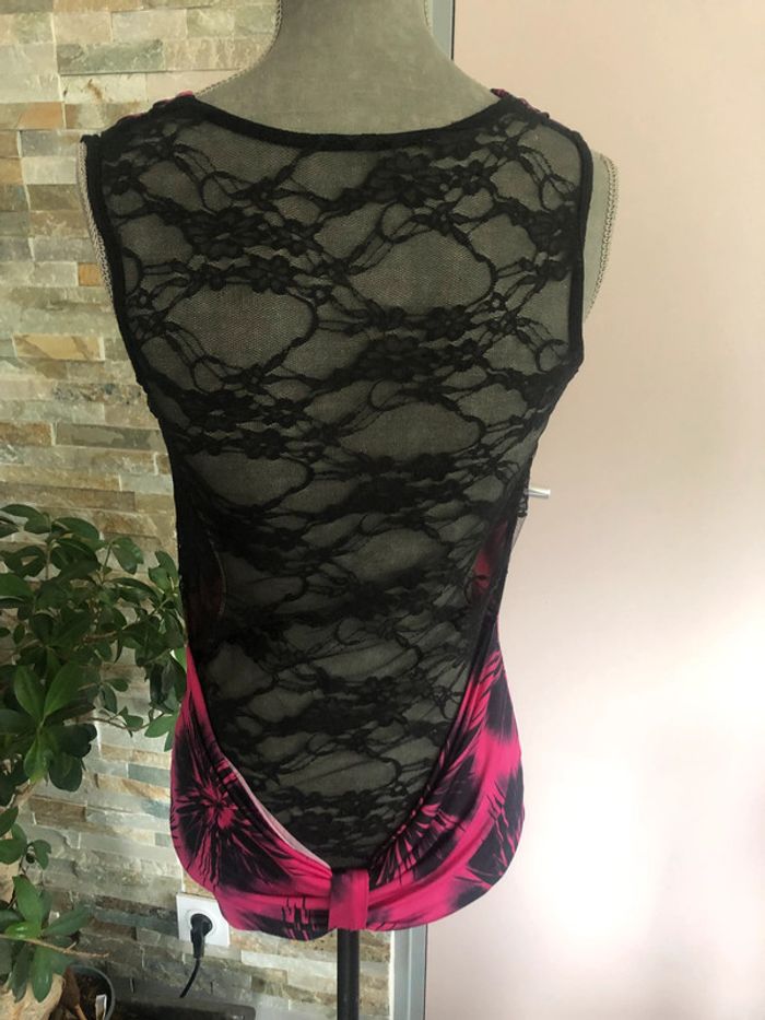 Débardeur rose et noir, le dos est complètement en dentelle. Taille 38 (étiquette effacée). Bon état, porté quelques fois. - Longueur totale: 70 cm Envoi sous 24/48h maximum! ----------- #dentelle #haut38 #hautdentelle38 #débardeuroriginal38 #vetement38minissa14