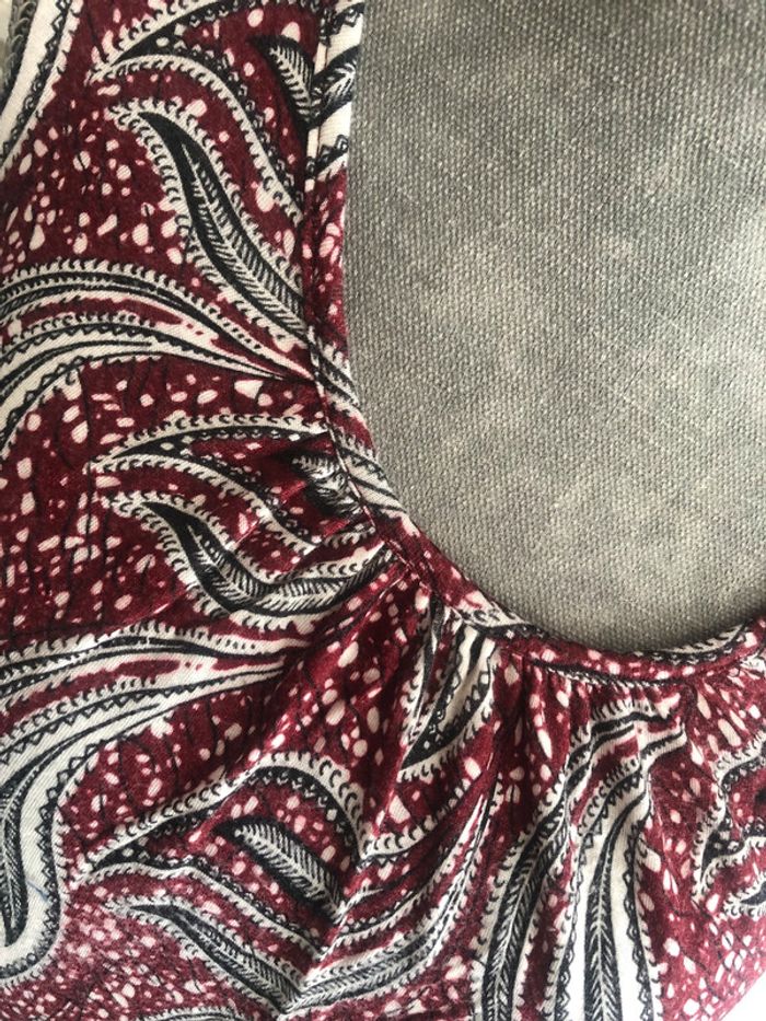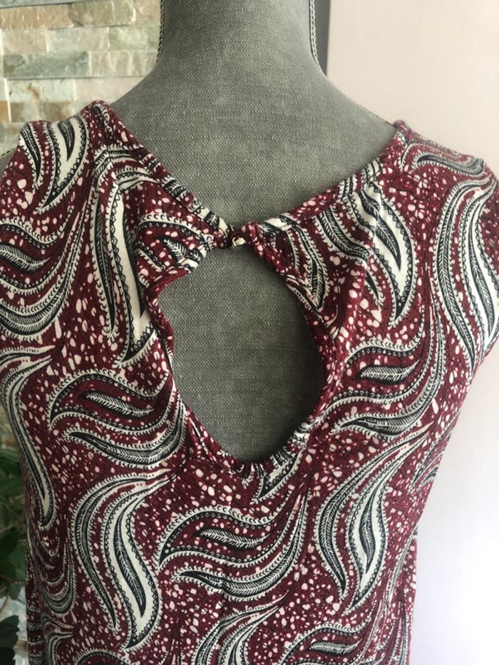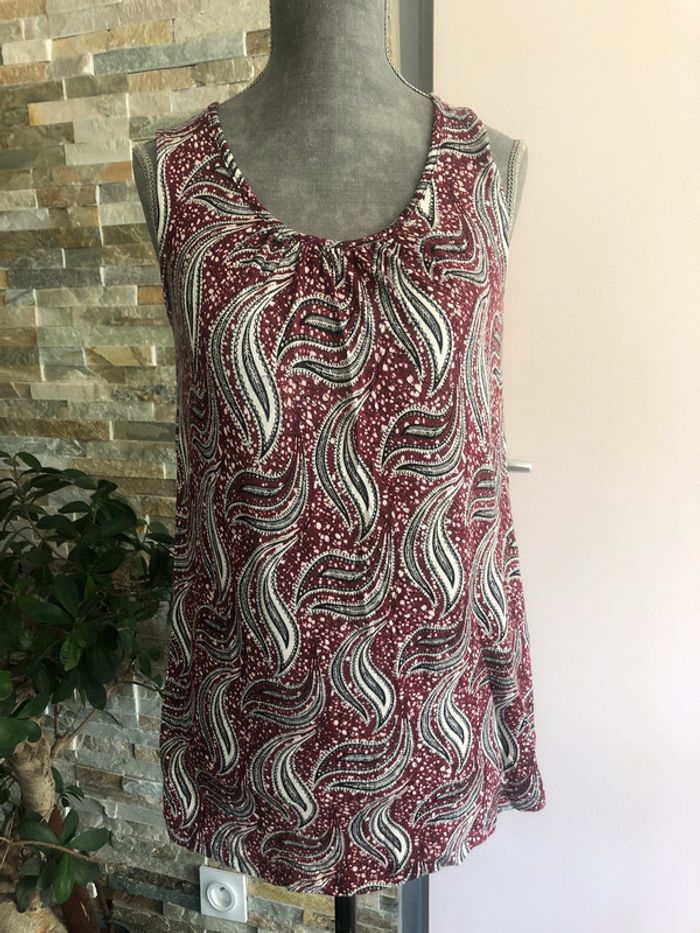 Petit haut, fluide, bordeaux, noir et blanc. Etat satisfaisant, pas mal porté mais pas de trous ni de tâches. Pas d'étiquette de taille : - Aisselles: 42 cm - Longueur totale: 65 cm environ. Envoi sous 24/48h ---------- #haut387 #fluide38 #vetement38minissa14
