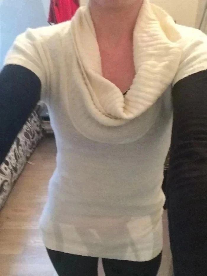 Pull beige à grand col, taille 38. Etat satisfaisant car bouloché (voir 2eme photo). Très agréable a porter. #pullgrandcol38 #pullmanchescourtes38 #pullbeige38 #vetement38minissa14