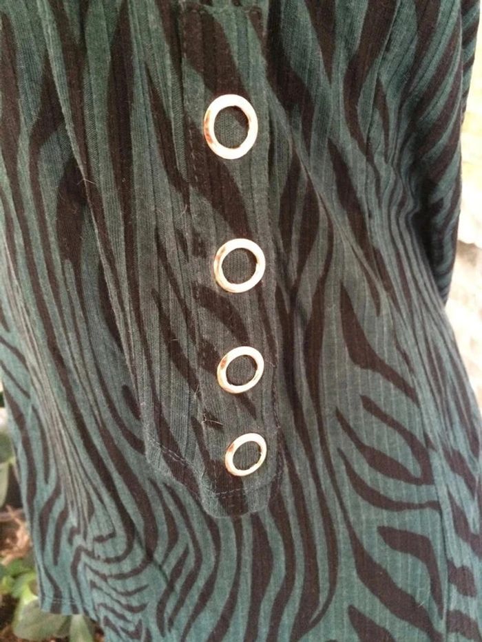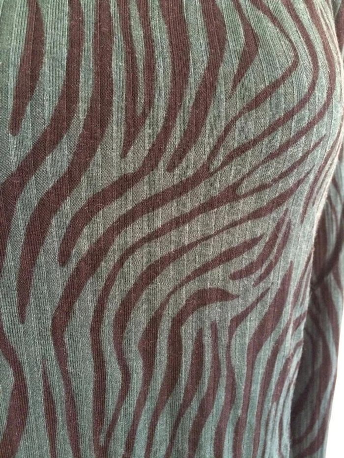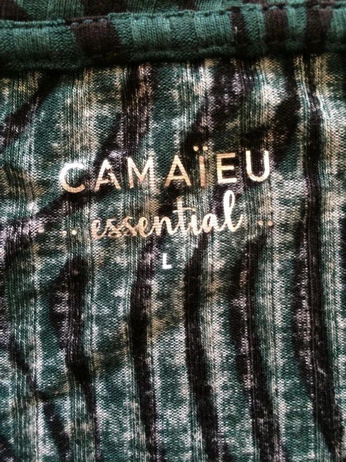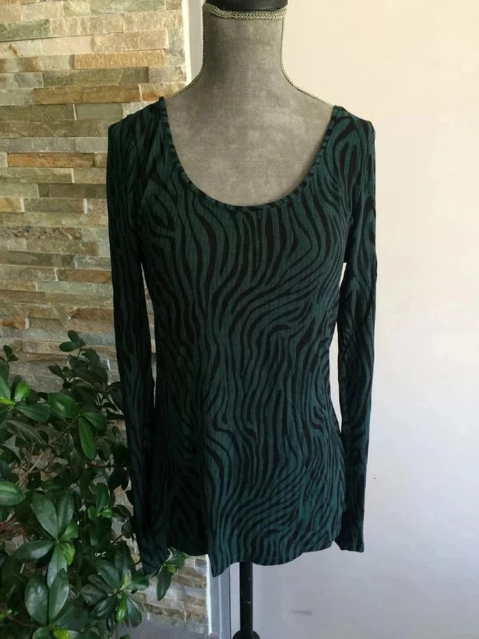 Haut noir et vert foncé, motifs zèbre. Taille L, marque Camaieu. Bon état général. Matière extensible. Longueur (encolure / bas): 62.5 cm. #hautzebre40 #camaieu40 #hautmotifs40 #vetement40minissa14
