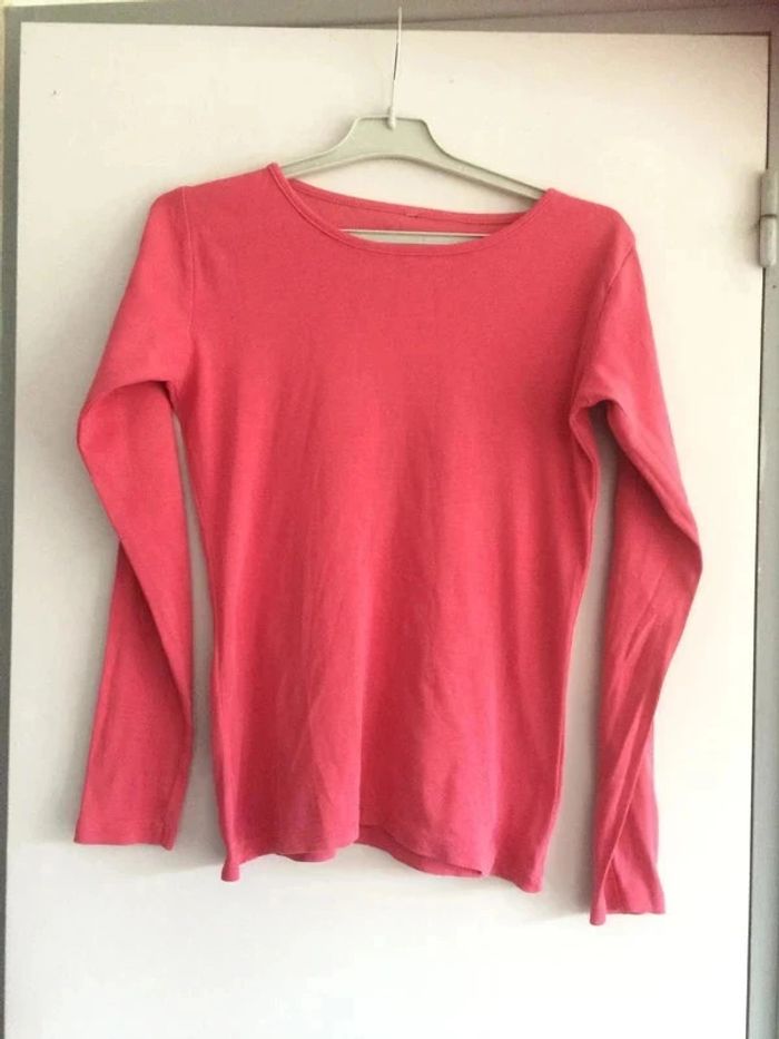 T-shirt rose en coton tout simple. Plus d'étiquette de taille mais correspond à un 36. #tshirtmancheslongues36 #tshirtrose36 #vetement36minissa14