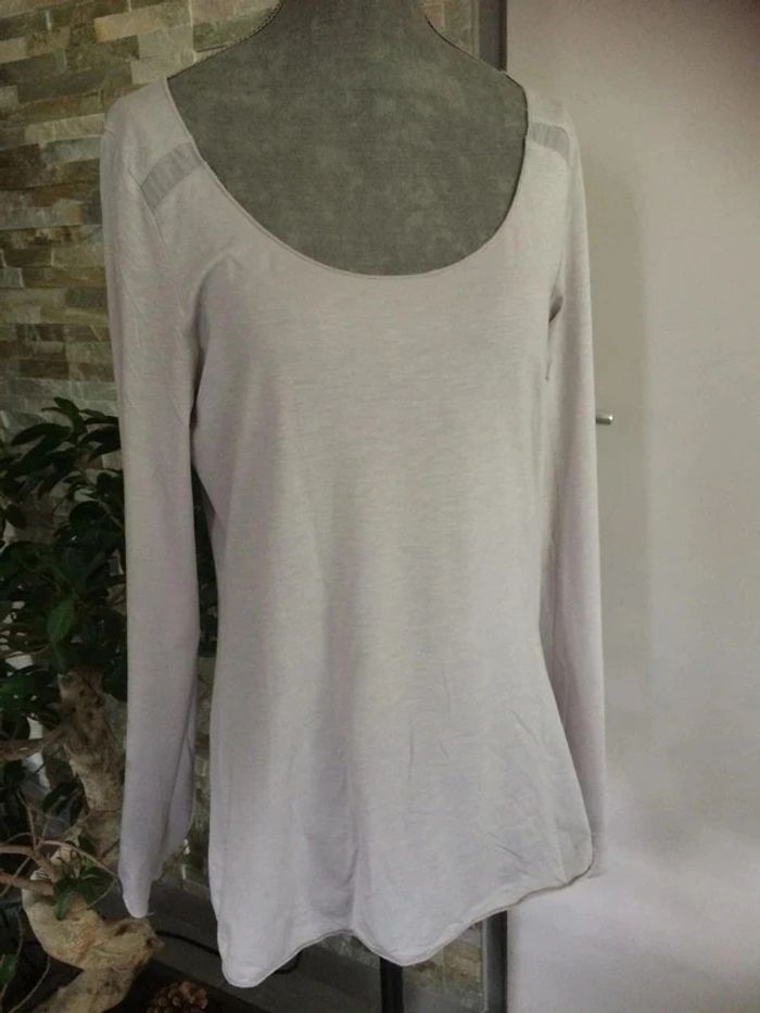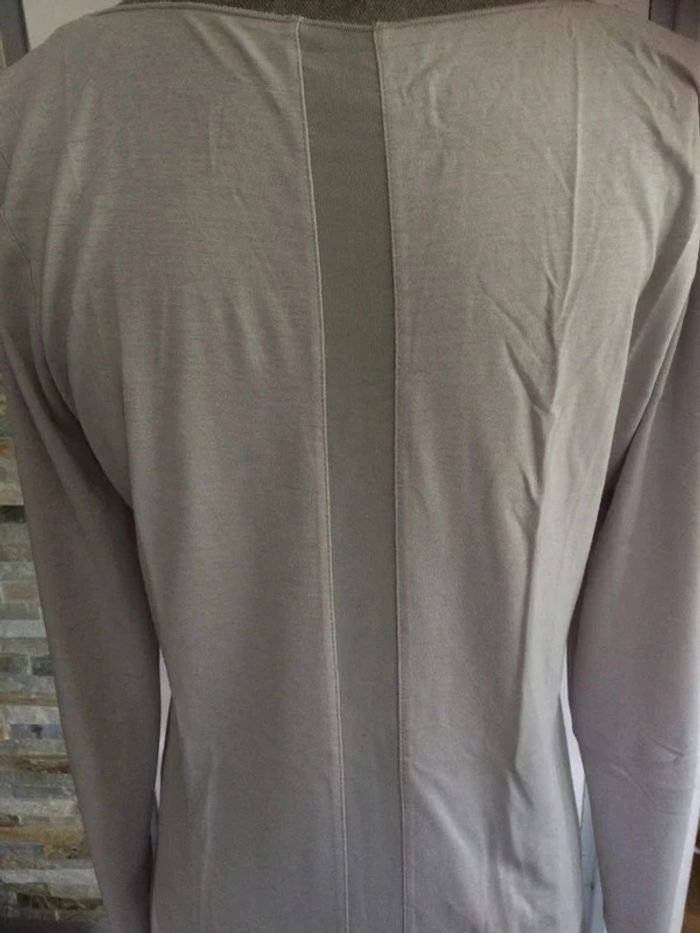 Haut gris très clair de la marque Camaieu. Etiquette coupée car trop voyante mais 38/40. - Epaules : 39 cm - Aisselles : 45 cm Une micro tâche dans le dos (photo 3) sinon très bon état. #hautcamaieu3840 #haut3840 #vetement38minissa14 #vetement40minissa14