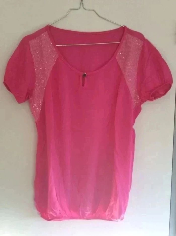 T-shirt rose à sequins 38/40 - photo numéro 1