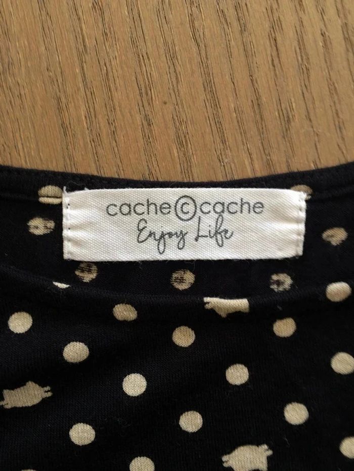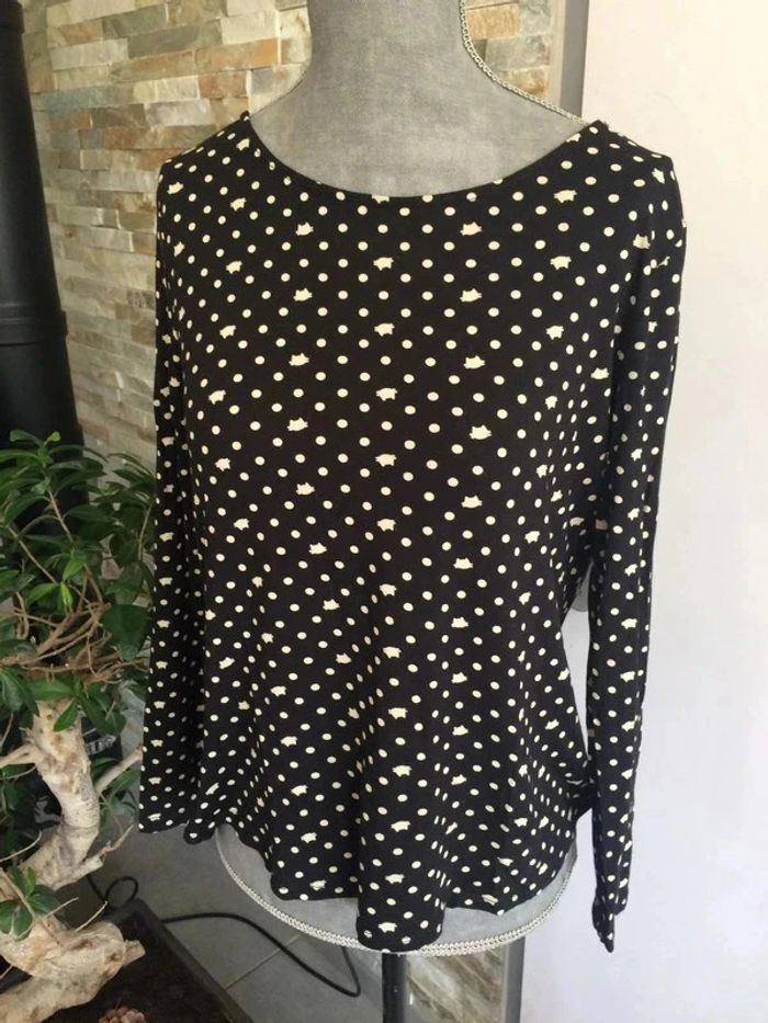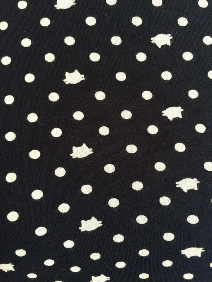 T-shirt noir à motif pois et chats. T-shirt loose, assez court, en très bon état. Plus d'étiquette mais voici les dimensions: - Epaule: 36 cm - Aisselles : 47 cm - Longueur: 51cm #tshirtcachecache36/38 #tshirtchat36 #tshirtchat38 #vetement36minissa14 #vetement38minissa14