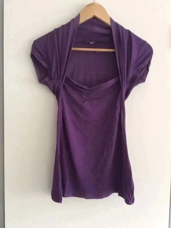 Petit haut violet taille 38. État satisfaisant car beaucoup porté et le derrière du col à un peu blanchi. #tshirtviolet38 #tshirt38 #vetement38minissa14
