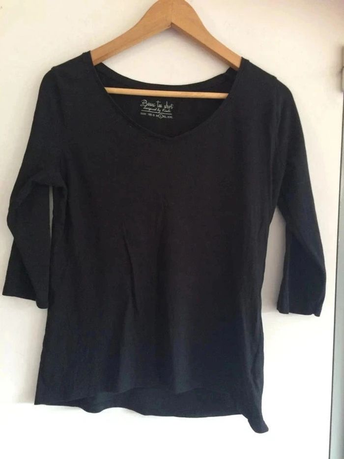 T-shirt noir, tout simple, manches 3/4. Taille L, très bon état. Marque Kiabi. #tshirtnoir40 #kiabi40 #vetement40minissa14