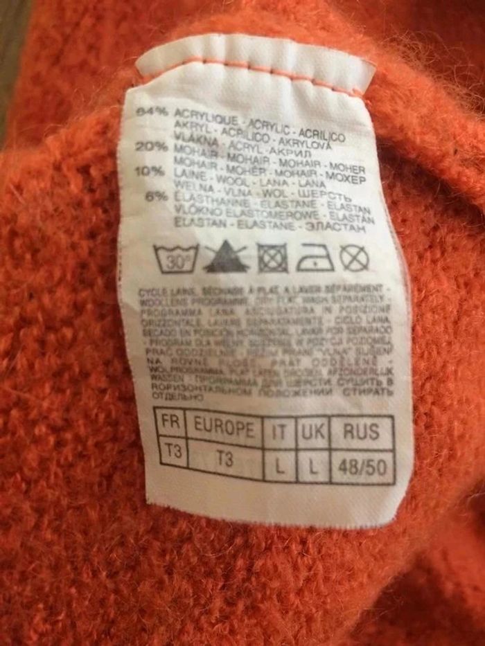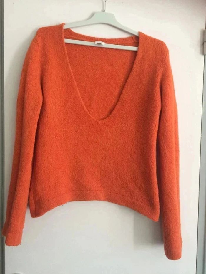 Pull orange comportant de la laine et du mohair. Taille 3. Pas mal porté donc état satisfaisant, défauts en photos. #pullorange40 #pullvintage40 #camaieu40 #vetement40minissa14