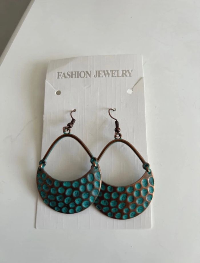 Boucles d'oreilles, fantaisie, couleur métal et turquoise ( jamais portées) #cadeaufemme #fetedesmeres #fetesdesmamans