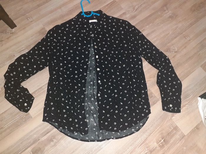 Chemise noire et blanche motifs fleurs gemo femme 38