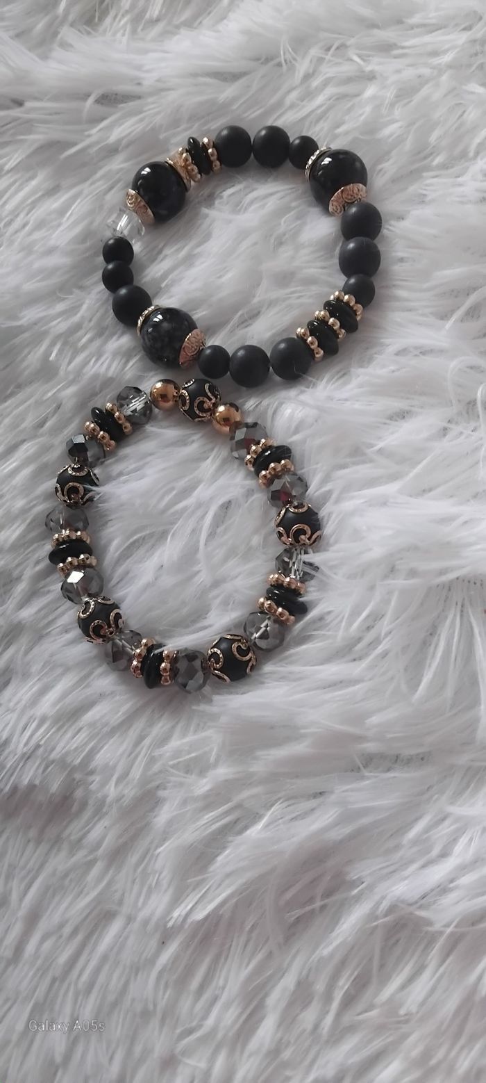 Lot de 2 bracelets avec perles volcaniques, perles noires ,perles transparentes