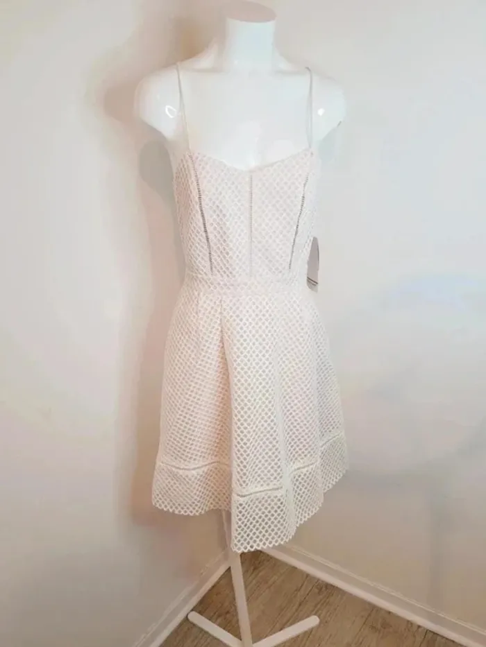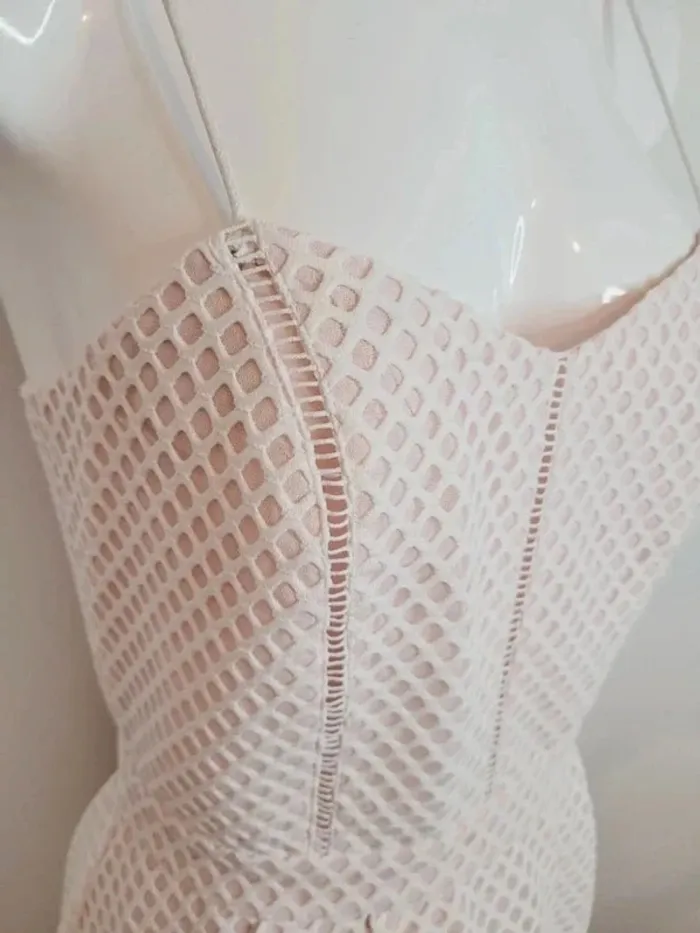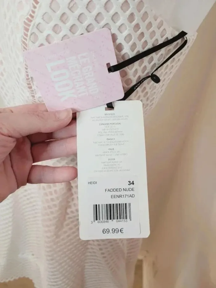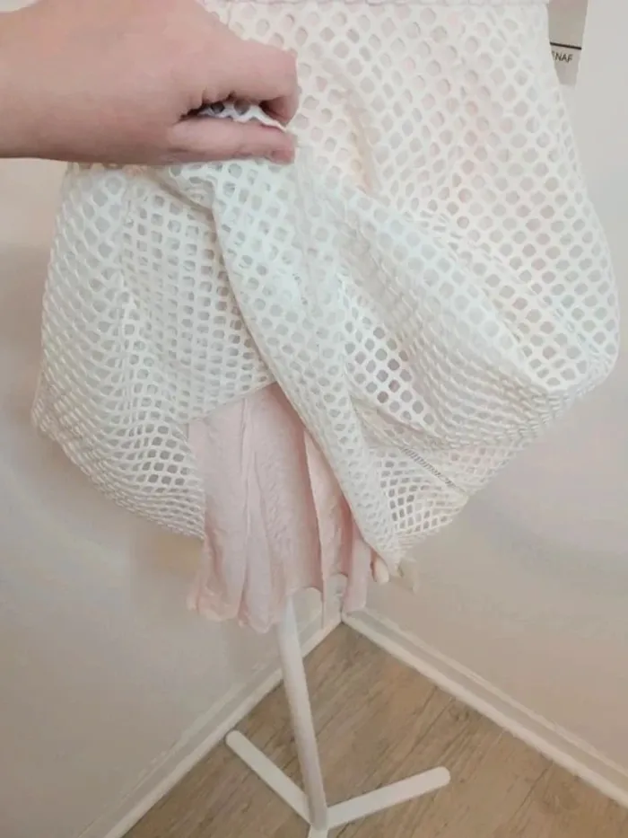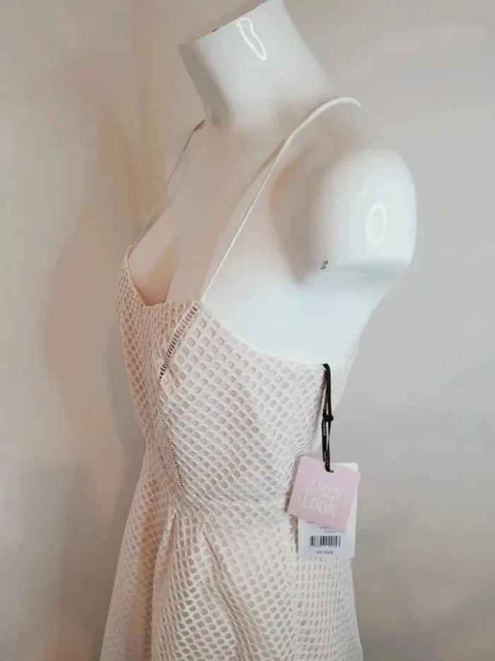 Sublime robe 👗 nude, marque Naf Naf, taille 34. Fond rose et tulle blanc.