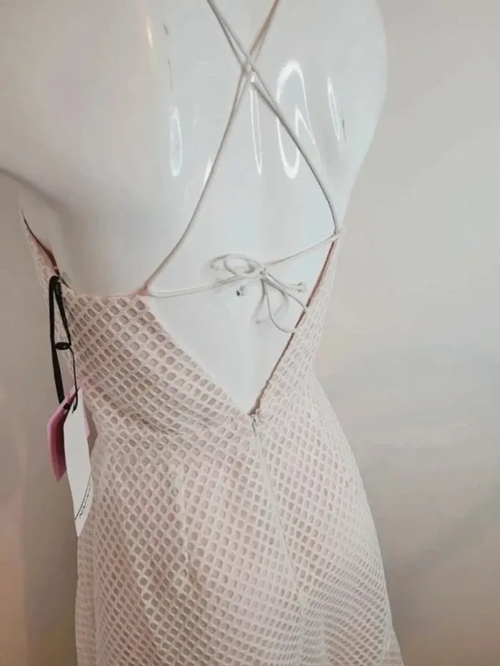 Très joli décolleté. Avec lien à nouer dans le dos et fermeture zippée.