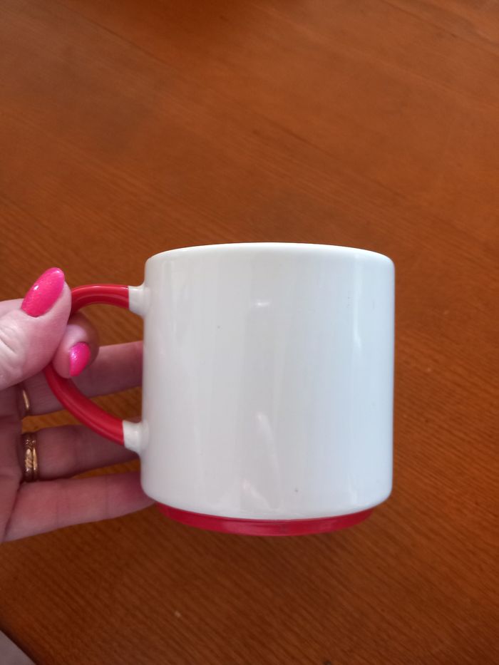 Mug diamètre 8 cm. Hauteur 8 vm.Rouge et blanc