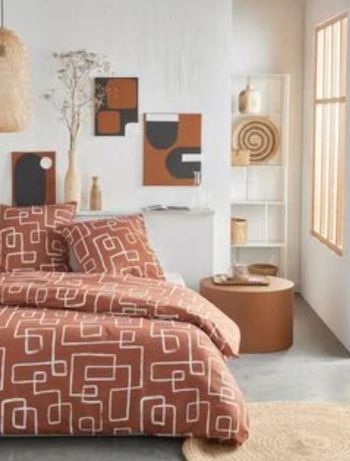 parure de lit neuve de la marque Today - Linge de Maison, collection Crazy - Maison Lefèvre. 🔸 Neuf, jamais utilisé, encore dans son emballage d’origine 🔸 1 housse de couette : 220 x 240 cm 🔸 2 taies d’oreiller : 63 x 63 cm 🔸 100 % polyester – doux, résistant et facile d’entretien 🔸 Design moderne et chaleureux avec motifs graphiques maison non fumeur sans animaux -Envoie possible avec tout les transporteurs