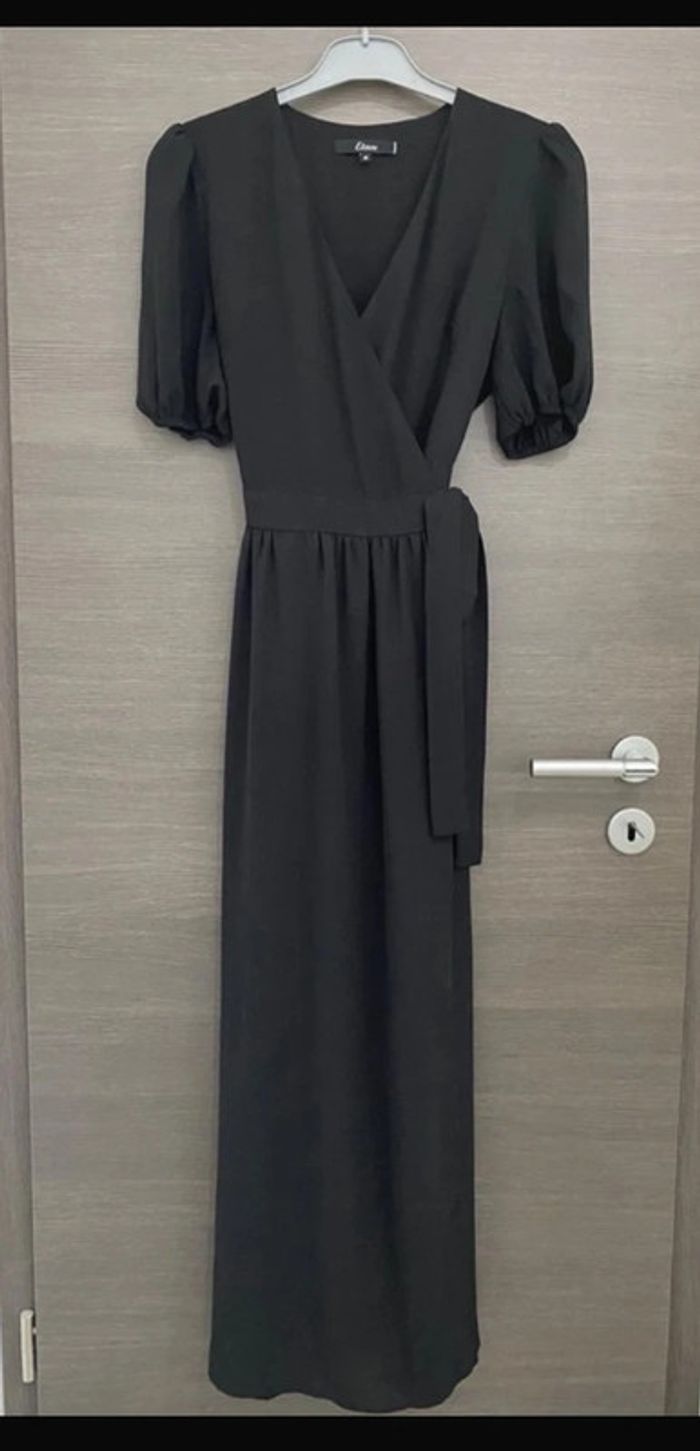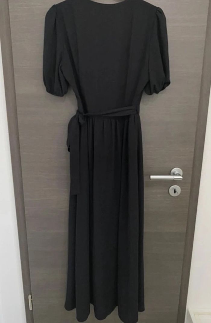 Robe cache-cœur noire Etam - Taille M 🤍 Très jolie robe cache-cœur achetée chez Etam, taille M. • Coupe élégante et fluide, parfaite pour toutes occasions : soirée, travail ou cérémonie. • Manches courtes légèrement bouffantes pour un look chic. • Ceinture assortie à nouer à la taille pour mettre la silhouette en valeur. • Longueur maxi. Acheté 59,90 euros en boutique Vendu 25 euros prix ferme État impeccable porté une seule fois ! maison non fumeur sans animaux -Envoie possible avec tout les transporteurs dont Vinted go