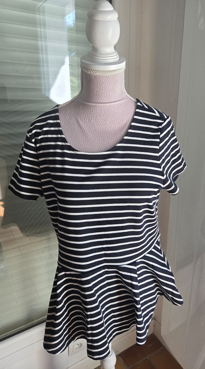#Mfemme_tatianaalena Joli t-shirt péplum Marque ◼️: Esmara Taille 📏 : Taille M État 🏷️: Tres bon etat Couleur 🎨 : Noir / Blanc