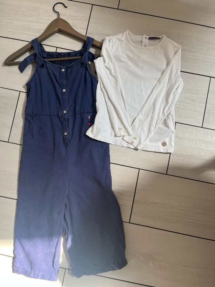 Combinaison et tee-shirt sergent major 7 ans, la combi bon état, le tee-shirt point à l’arrière d’une manche et petite tache jaune pâle sur le haut du tee-shirt, voir photo