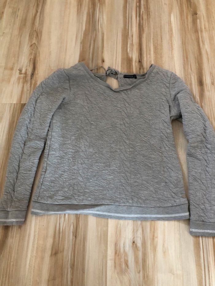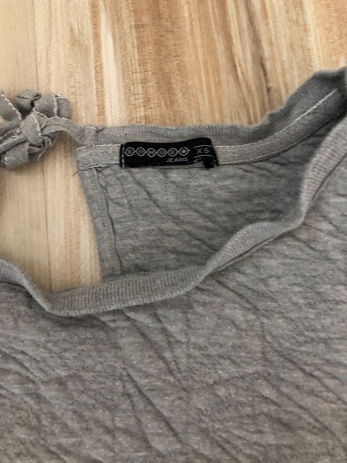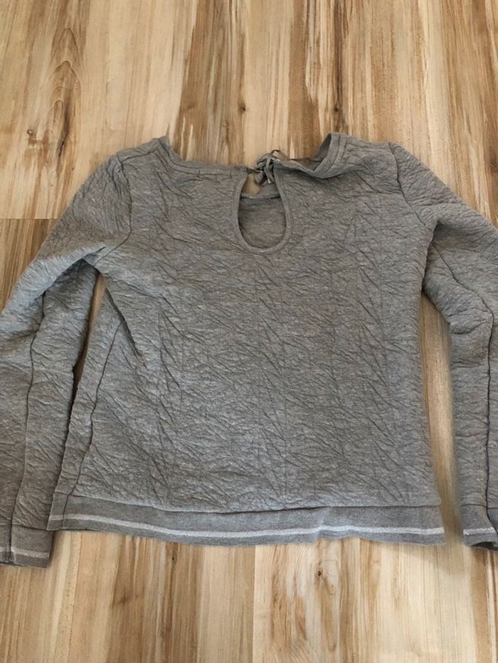 sweat gris bonobo avec noeud au dos et ouverture, taille XS tres bon etat