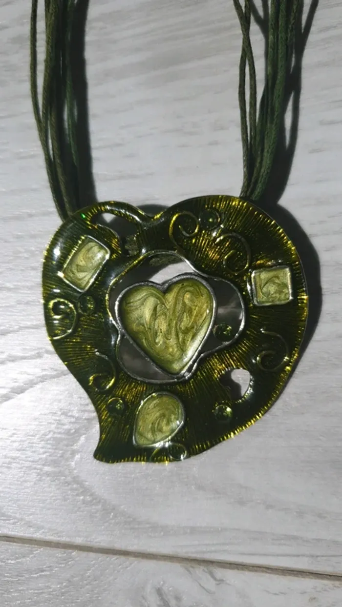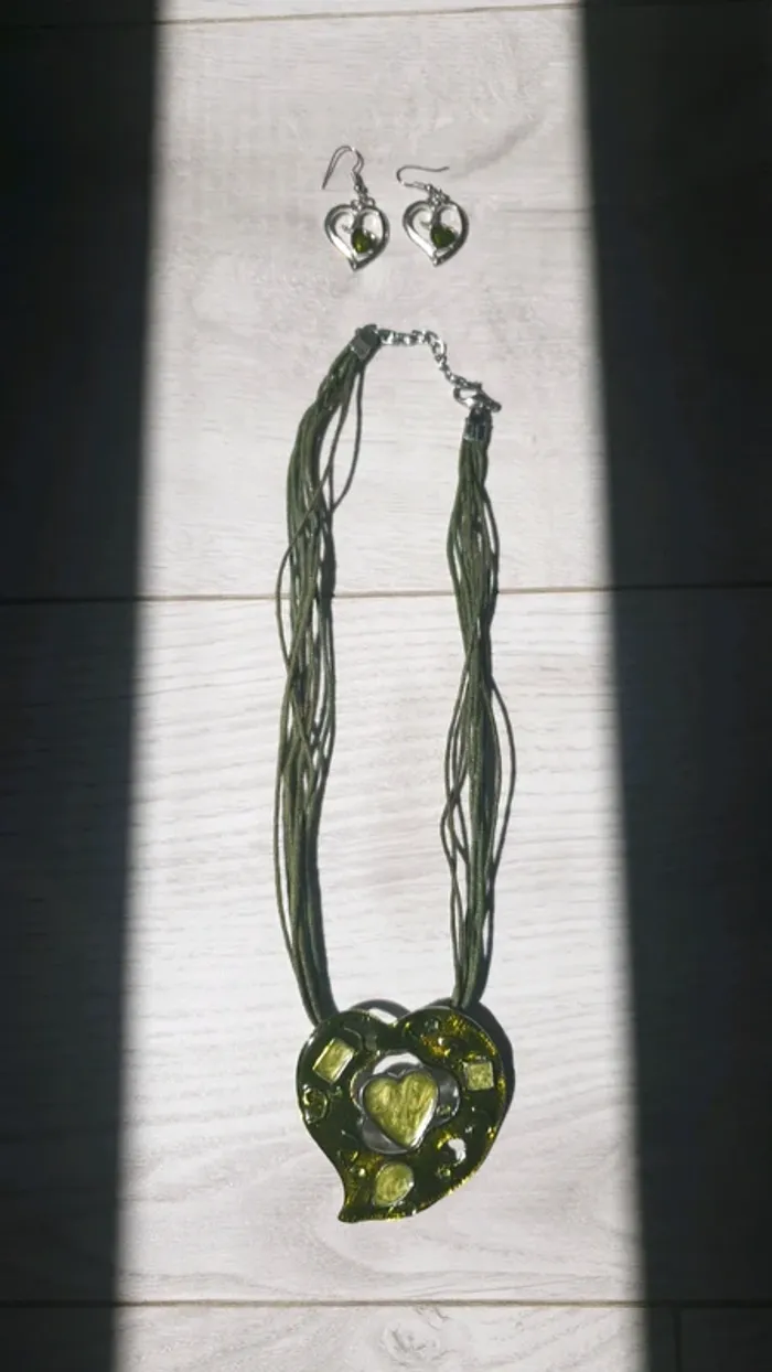 Parure collier et boucles d'oreilles coeur vert - photo numéro 4