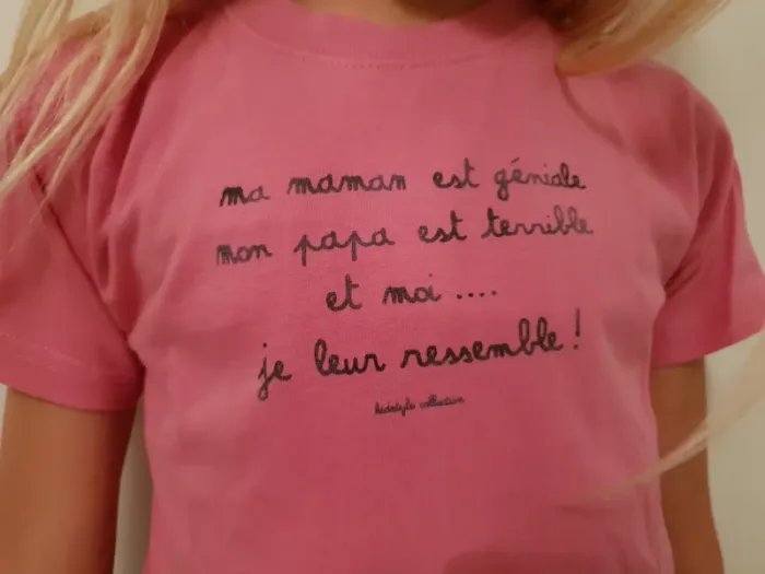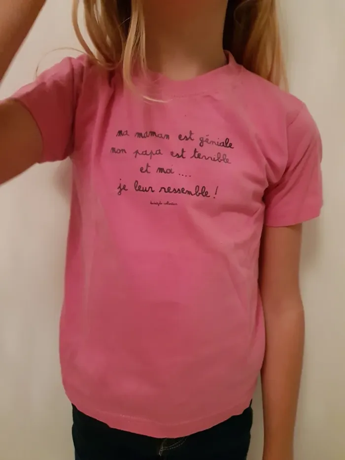 Tee-shirt rose Manches courtes Message papa maman Taille 3/4 ans Taille grand #maman #papa