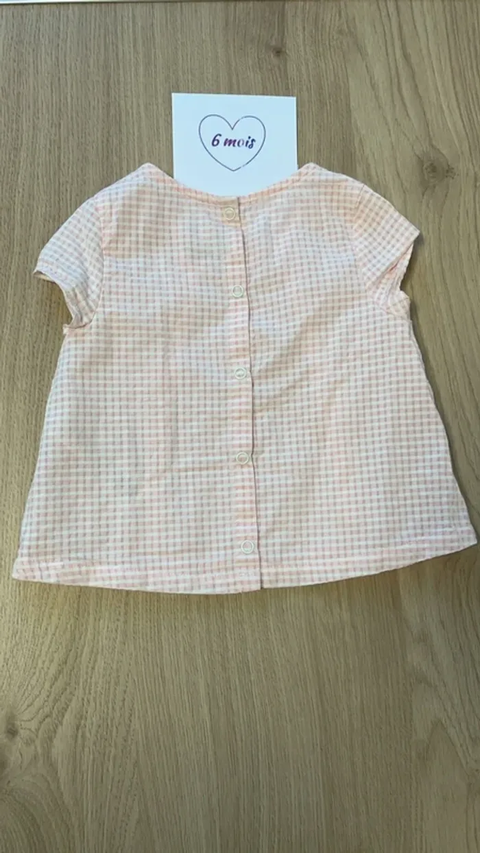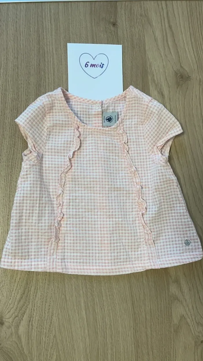 Chemise Petit Bateau, taille 6 mois Rose et blanc, excellent état ! N’a été porté que par un seul bébé, n’est jamais passé au sèche linge !