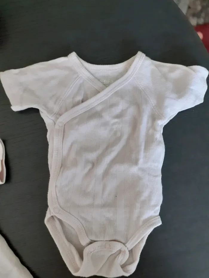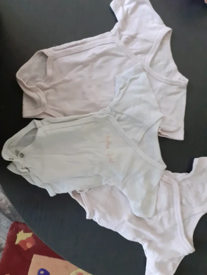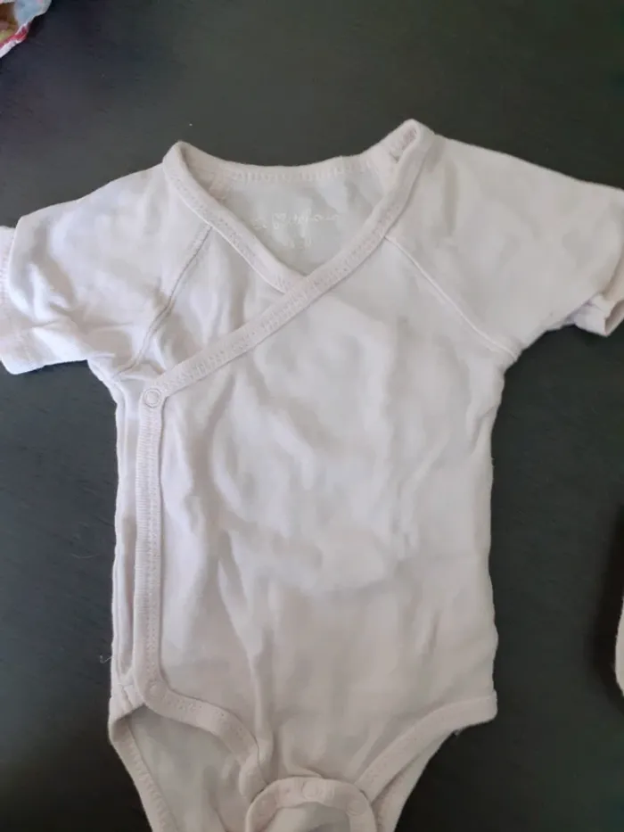 Lot de 3 bodies manches courtes en très bon état Rose et blanc Boutons pressions sur le devant 3 mois