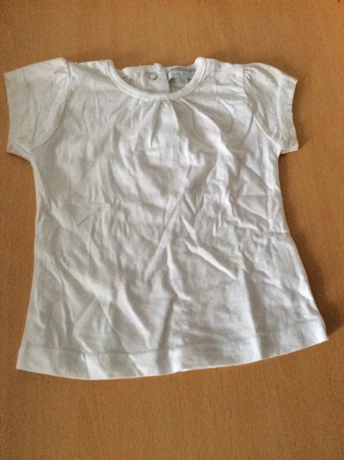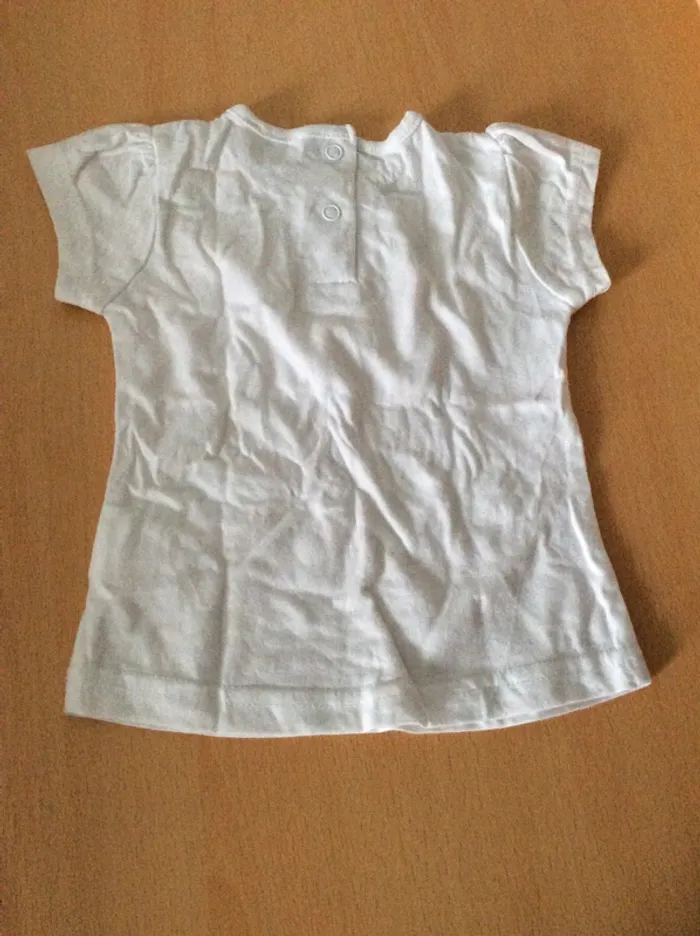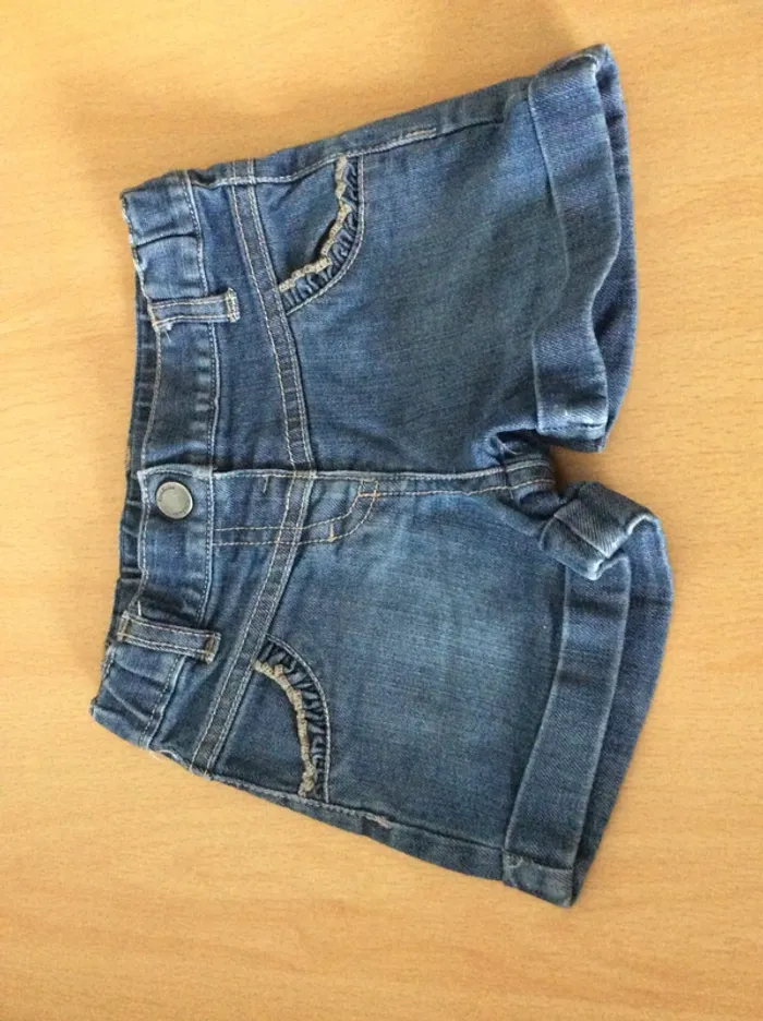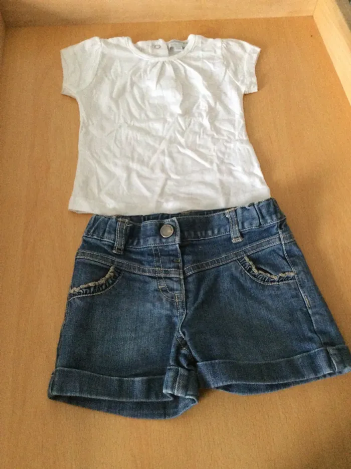 Ensemble short en jean souple+ tee shirt blanc avec pression à l’arriere Kimbaloo 6 mois Très bon état