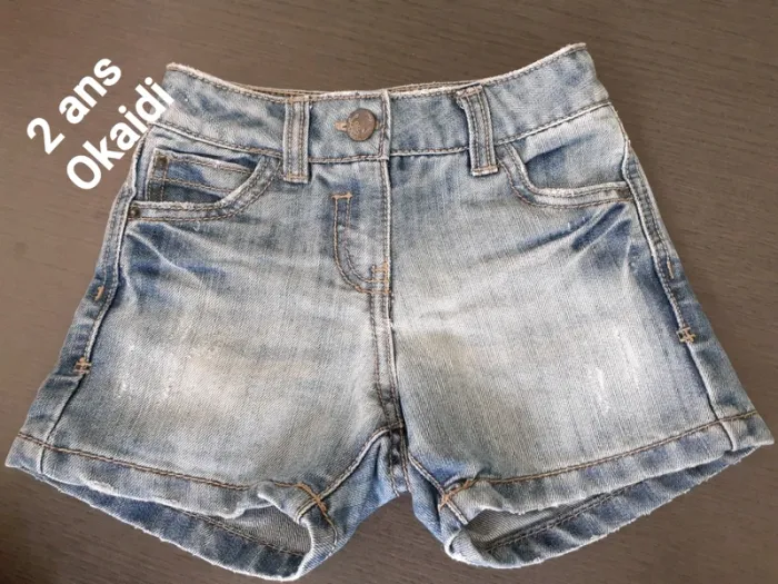 Short en jeans effet usé en très bon état Okaidi 2 ans