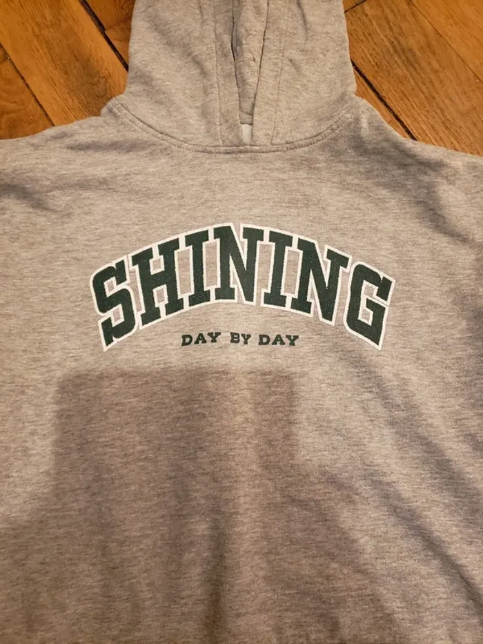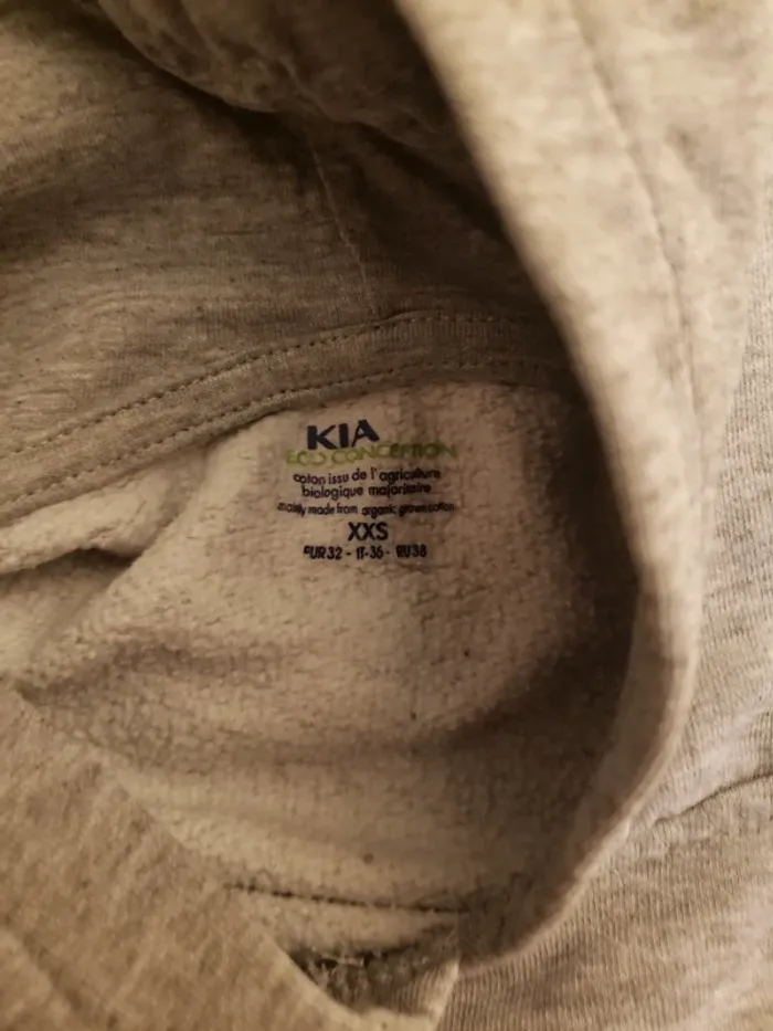 Sweat a capuche gris avec écriture verte Kiabi XXS