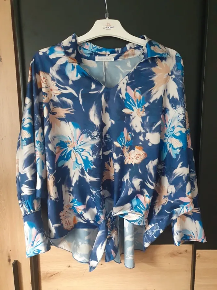 Joli chemisier bleu made in italy taille unique jusqu'à un 42 porté 1 fois avec un nœud qu'on resserre à la taille #chemisier #madeinitaly #tailleunique #taille42 #aline42 #nœud #bleu