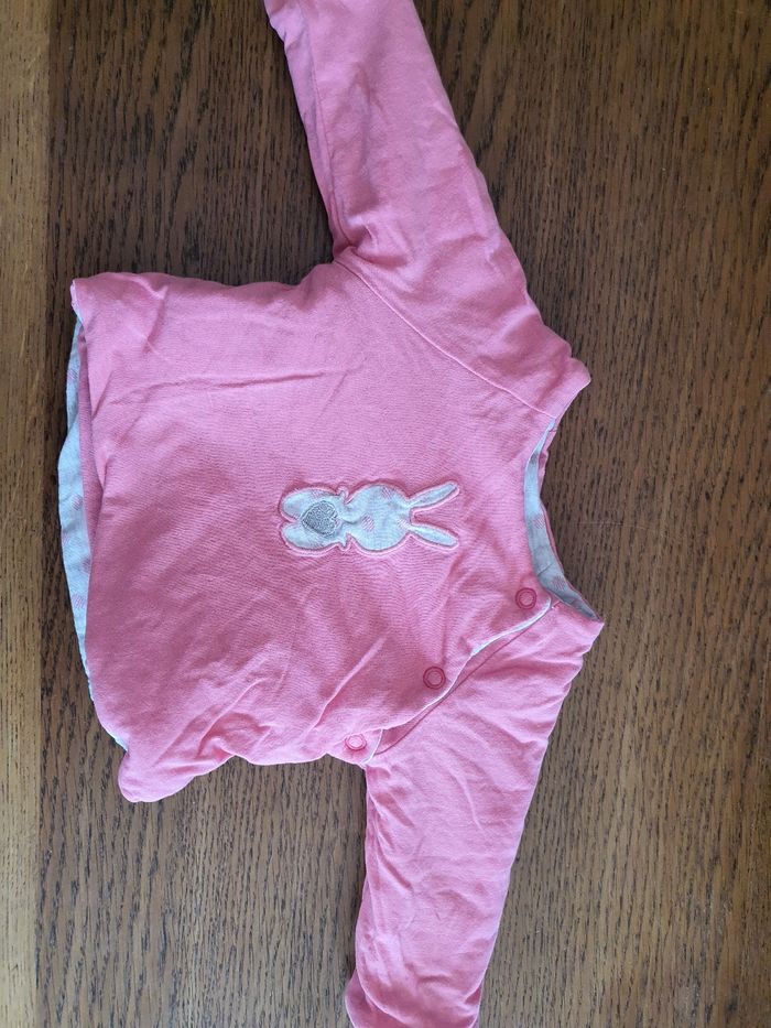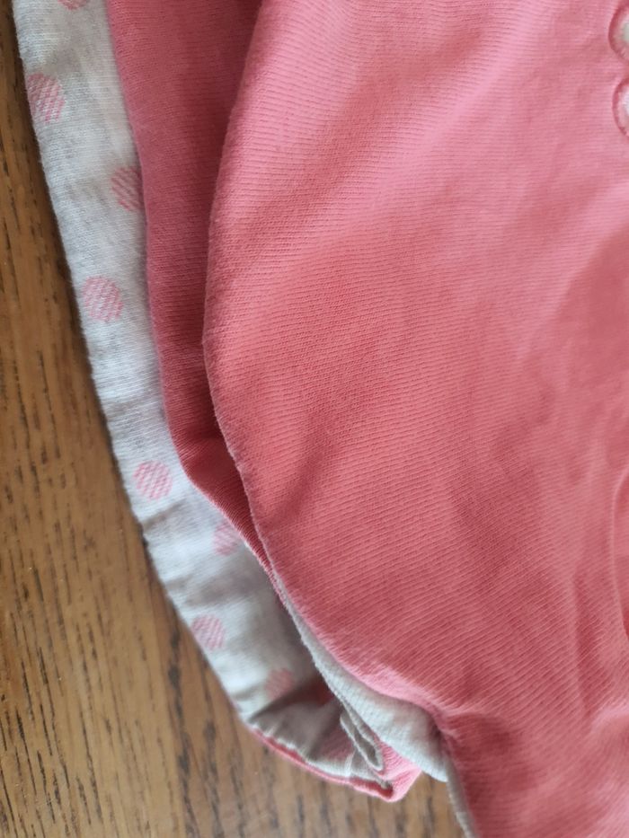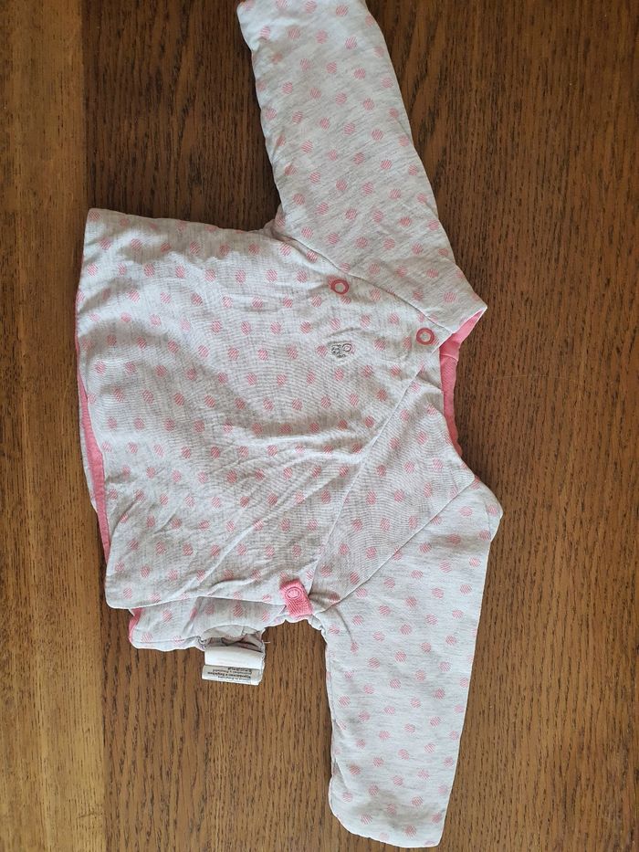 Gilet réversible gris d'un côté et rose de l'autre assez épais et tout molletonnée super agréable pour bébé 🥰🥰 Taille 1 mois