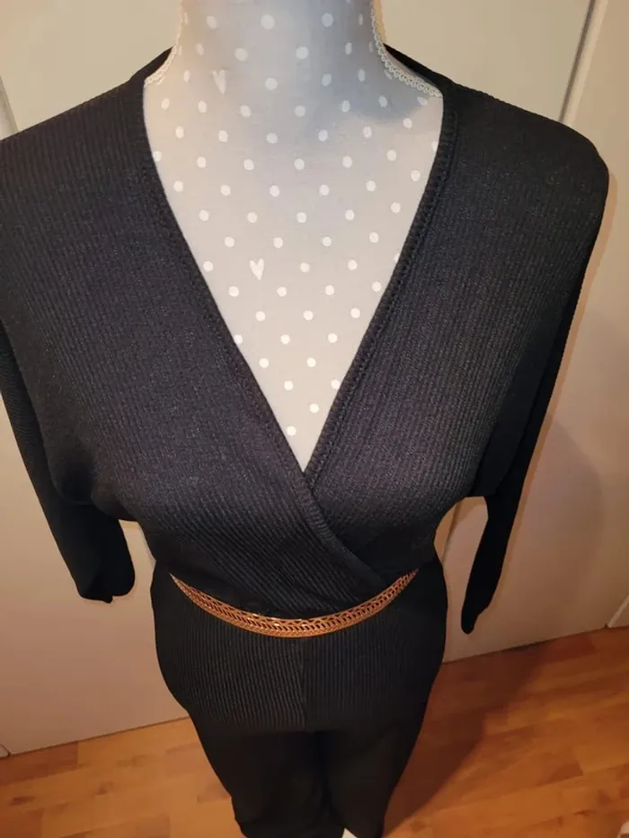 Combinaison noire cœur croisé chic