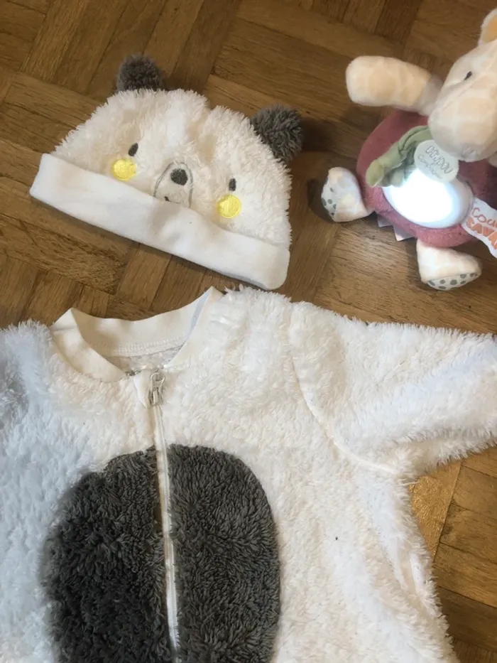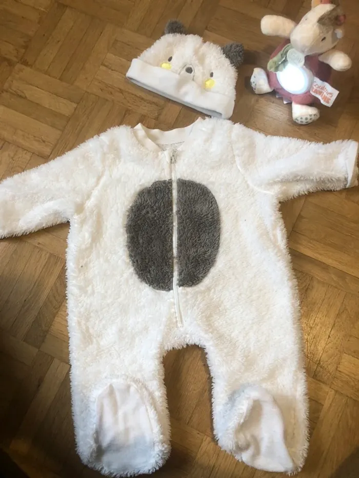 Combinaison/ sur pyjama en polaire tout doux (poil long) avec petit bonnet nounours assorti Mixte 3 mois