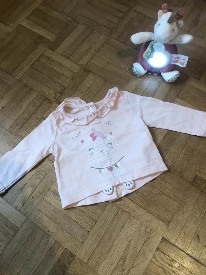 T shirt manche longue rose S’ouvre tout du long dans le dos pour enfilage facile