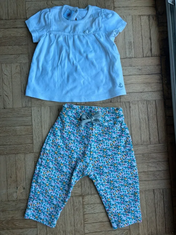Petit ensemble t short blanc et pantalon large motif fleurie