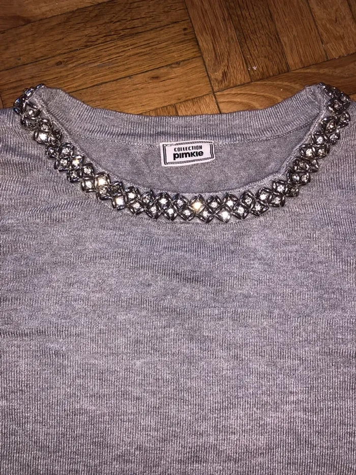 Pull com rond avec strass, il n’en manque aucun L’étiquette a été coupé mais c’est un taille S #justine60350_femme36