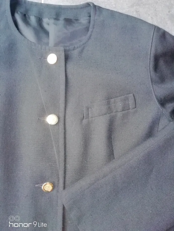Veste en bon état sans étiquette de taille mais correspond à du 44 Polyester et viscose, made in France