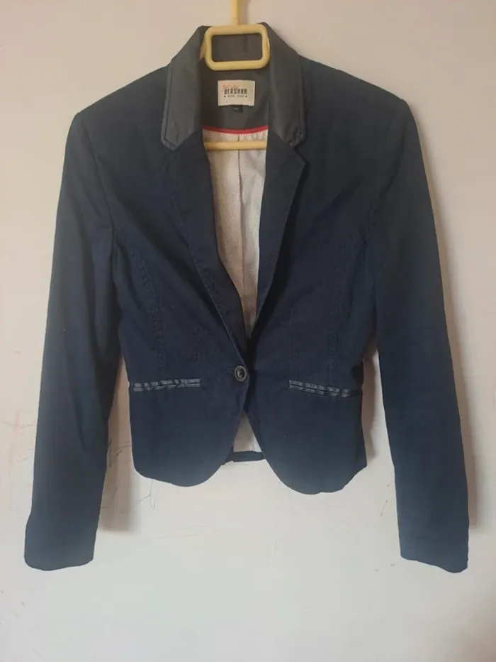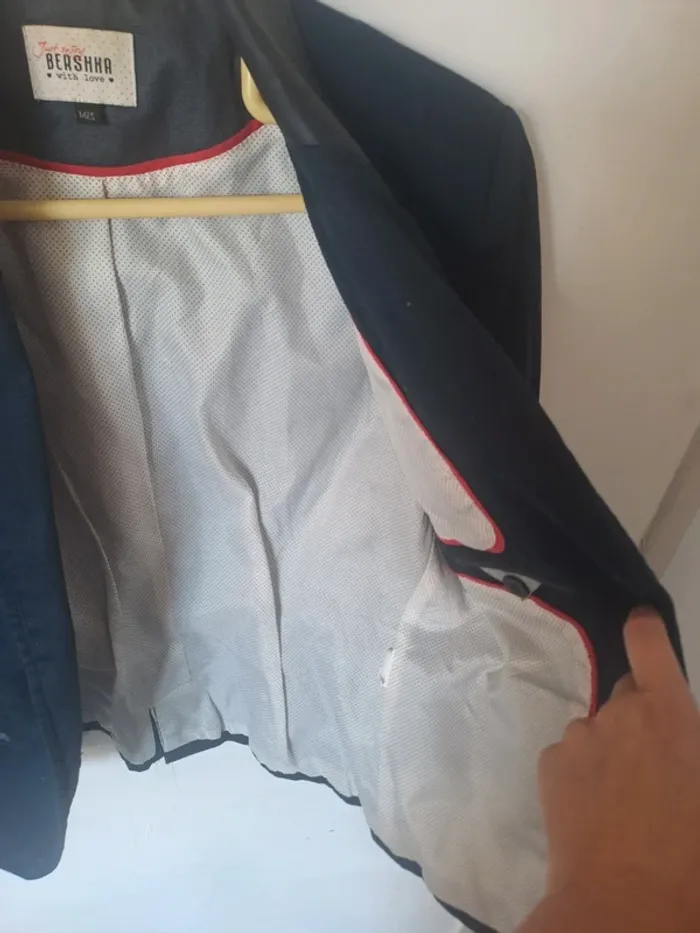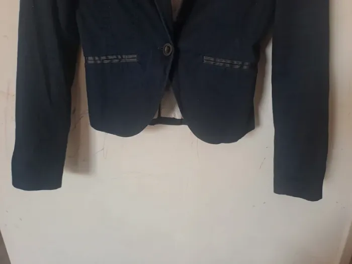 Blazer bi matière Manches longues Attache avec 1 bouton Couleur bleu marine et noir Taille M (38) Marque Bershka #elodie2429femmehaut #elodie2429femmeveste #elodie2429femmetaille38